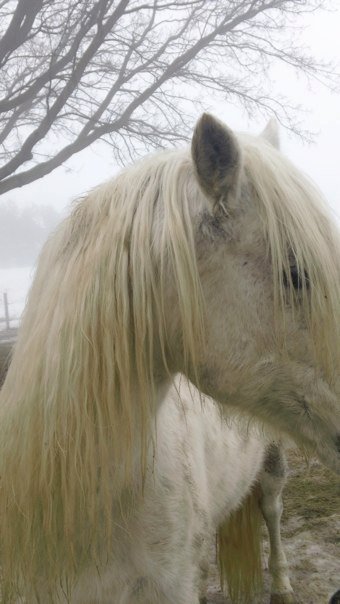 My grey horse used to be a star. On his last day in the heavens he was offered three roads and he chose a narrow path made of crushed indigo stone. The path of the horse. He picked his way carefully down out of the sky, his mane spilling silver as he walked. Everyone who meets him knows he is ancient. Mere strangers understand he can move between worlds. He is a messenger. But stars speak an old language that has so far gone undeciphered. It is up to me to learn.